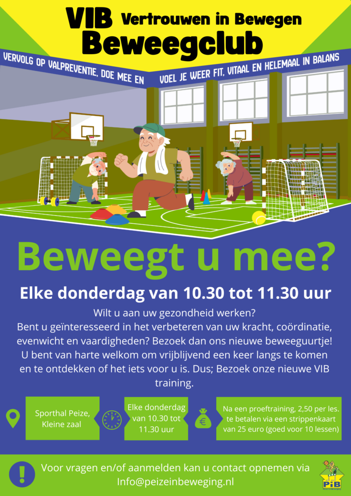 Wil je een keer komen kijken, meedoen of meer informatie? Stuur dan gerust een mail naar info@peizeinbeweging.nl
